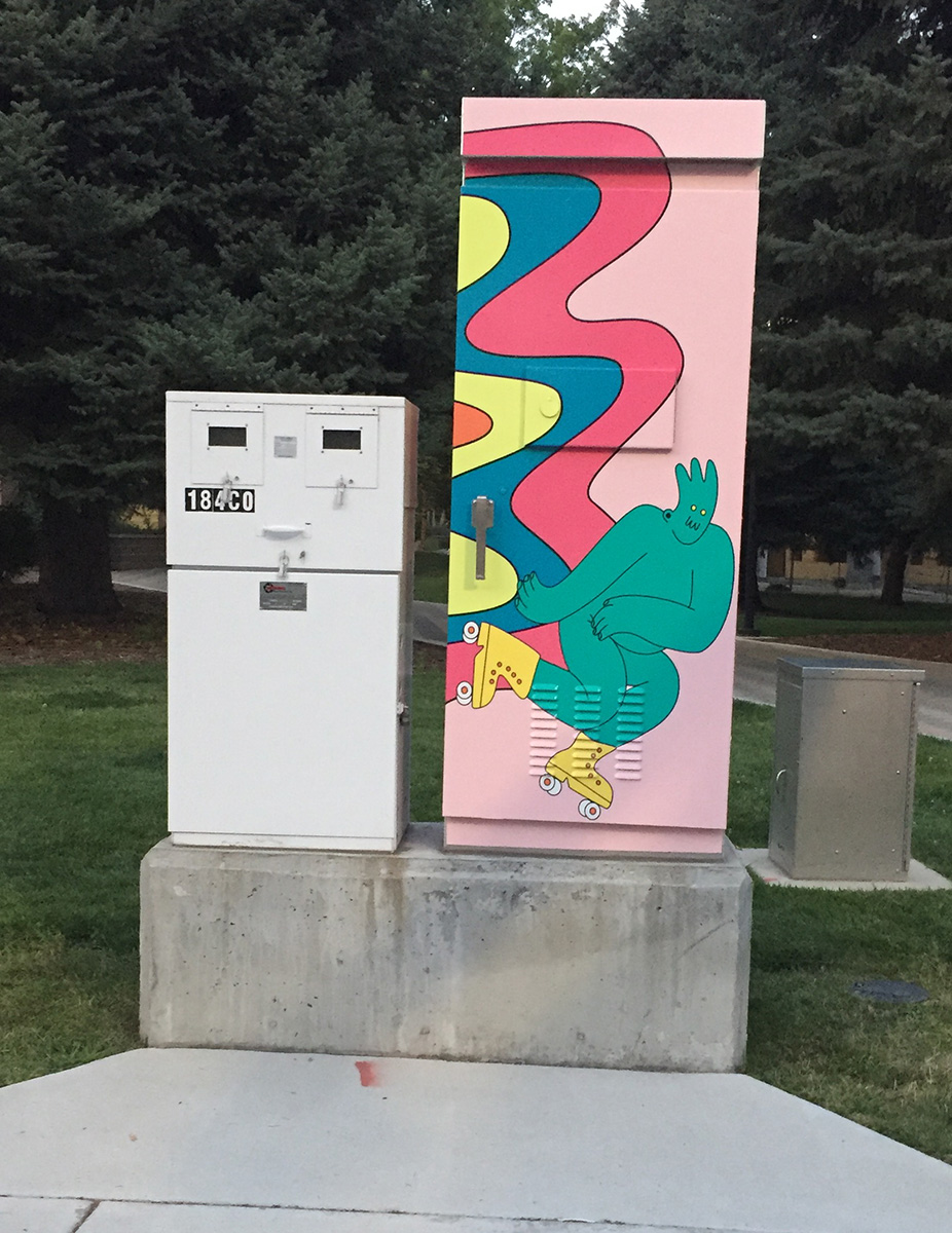 I live and work in Boise, Idaho, where I am a free-lance cartoonist and graphic artist. I am currently focused on a 365 day project in which I am completing a new piece of art daily for a full year. My colorful characters, the Alter Egos, represent humans in their most natural form living their lives every day. I am very active on the local art scene in Boise with art showings, commissions, and public art projects for City of Boise Arts and History Department. I have painted murals locally in various public art spaces, and have additionally contributed several large pieces for various local Boise businesses. My futures goals include designing and painting more mural art in large spaces.