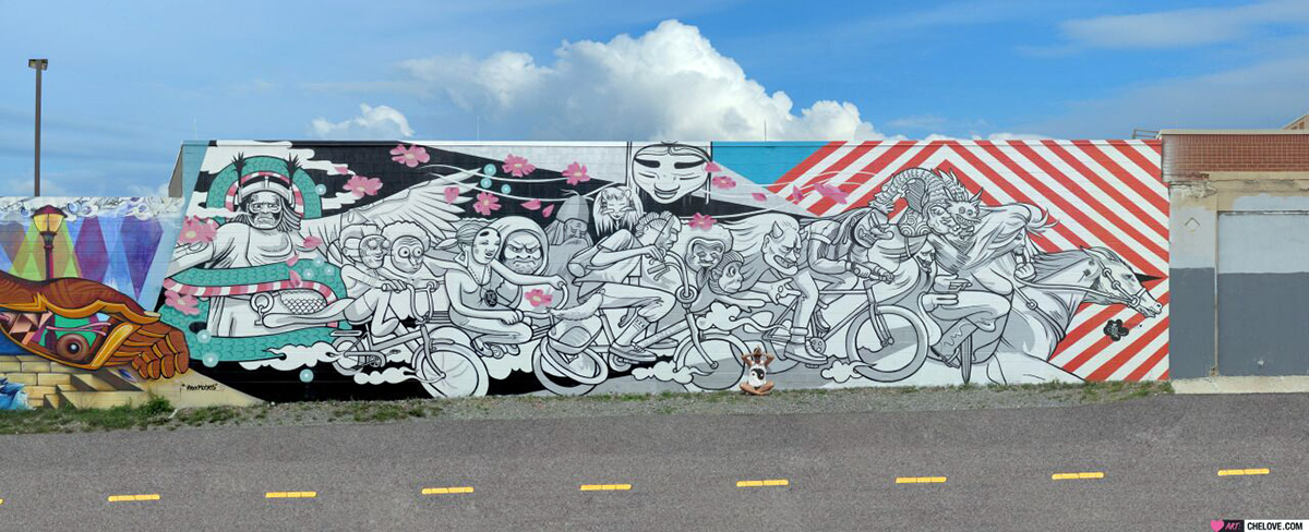 Dealing with the rainy season was a struggle for this project. Luckily the artists were able to pull it off in about a week using a classic gridding method and two assistants. It was an amazing experience for the team to be able to paint a block away from the ocean in a newly renovated resort. When in Honolulu, make sure to see it for yourself. The mural is open to the public and can be viewed from the 5th Floor Pool Bar (Swell.)