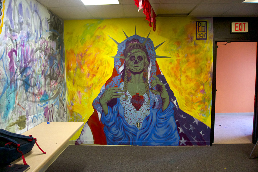 Originally from California, Eyesart has been painting since early 1990’s and has emerged as an Aerosol artist known for his creative lettering approach and stylized painting. Starting out as an aerosol artist with classic LA graffiti artist geared him to develop his lettering style, aerosol painting techniques and approach to every mural to have its own personal feel and touch based on the (event, location, expression. Etc.). Also able to create and Mold his own vinyl toys taught him the patients of brush work which lead Eyesr into sign painting. Getting more comfortable with brush work entered him into 90-minute live trial battles where the artist freestyles the design in front of live audience. With minimal graphic design background and great deal of street experience the designs are created by the streets for the streets for the masses to enjoy and experience. Eyesart has had his work displayed all over United States, Canada and Mexico for the masses to see first-hand how the work gets created. Published works of Eyesart include OC Weekly, LA Weekly. Smog City, Neighbor-Hood Love LA, CBS The movie documentary, Ironlak paint, GCS Gallery, Secret walls. Commissioned works include: Ironlak, Las Vegas Throw Down, Life is Beautiful, Miami Art Basel, Skullz, Toyota, Smog City, GAS auto restoration and more.