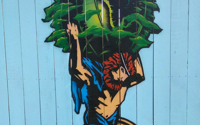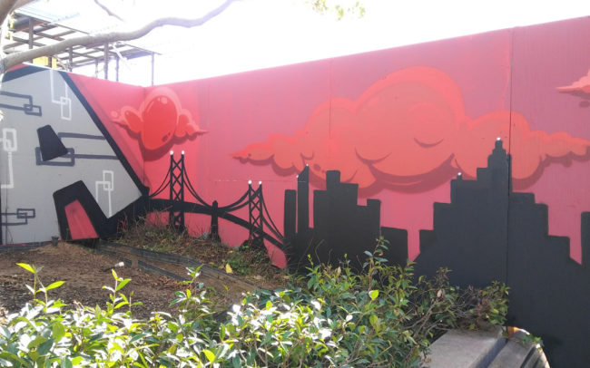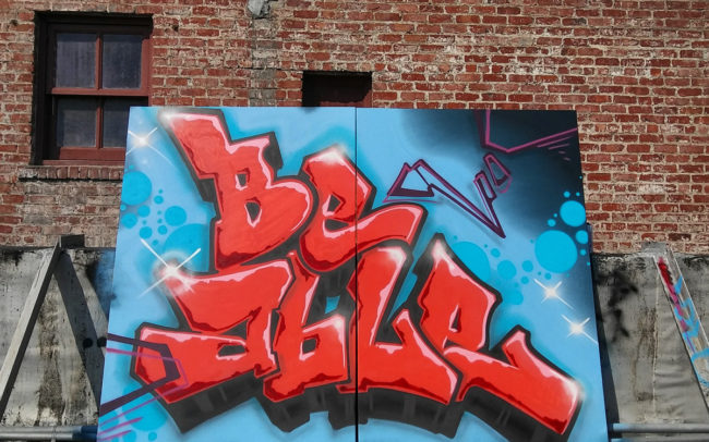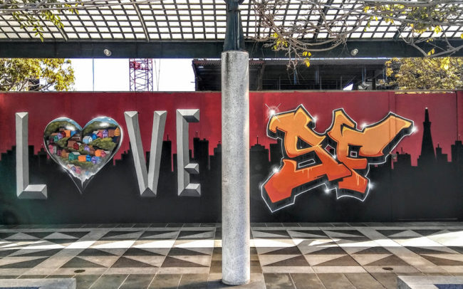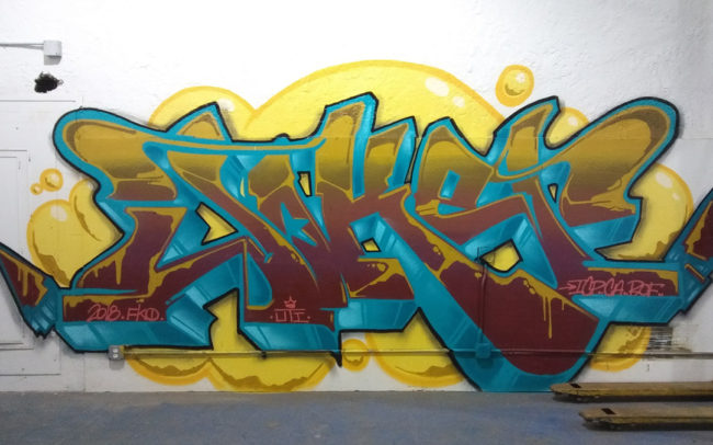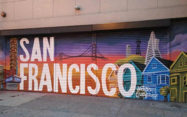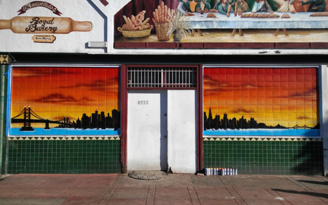 Joker is one of the few representatives left of the late 80’s Bay Area graffiti generation. A native San Franciscan, he has been involved with the SF graffiti scene since 1986. After taking a 15 year break from the spray can to pursue a career in youth development and social work and raise a family, he exploded back on to the Bay Area graffiti scene in 2009. He is known for painting iconic San Francisco skyline silhouettes with radiant sunsets. His work has been commissioned in murals throughout the Bay Area. He embraces the concept of using public artwork to provide opportunities for building cultural bridges and community collaborations. His work is distinct, vibrant and precise, and he transitions seamlessly back and forth between graffiti style paintings and classical style community mural work. He currently makes a living as a professional artist and curates for the Lilac Alley Mural Project. All the while continuing to produce top notch graffiti murals throughout the Bay Area.